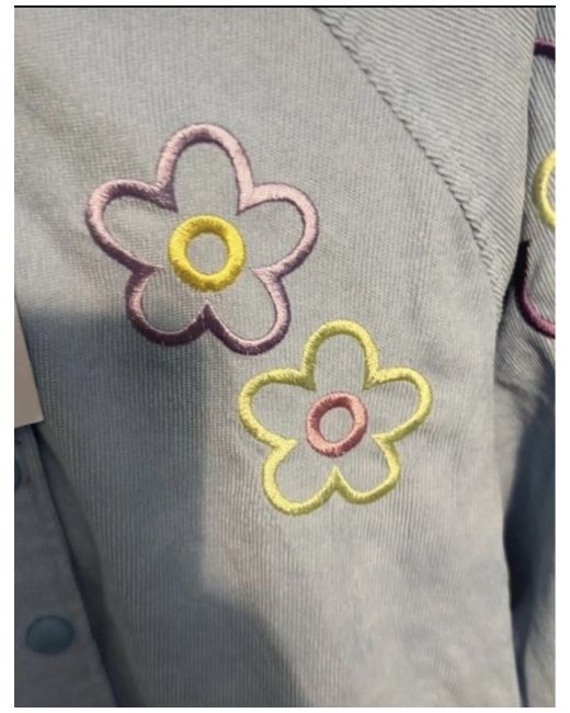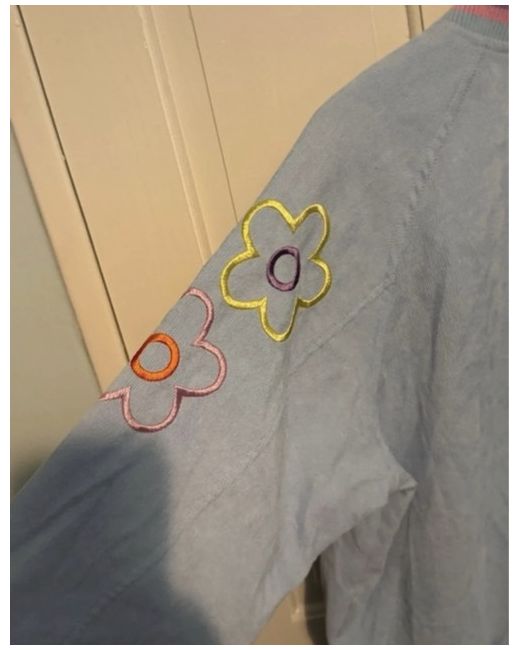 BNWT ASOS Label rail pose and repeat jacket. The jacket is a baby blue cord style with purple and pink collar, cuffs and hem. Two front pockets. It has lovely embroidered flowers on front and sleeve. Lightweight jacket with a polyester:satin style lining. Press stud fastening at front. Measurements are approx Armpit to armpit 23 inches Shoulder to hem 24 inches