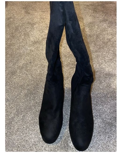 These knee-high boots by ASOS feature a platform style with a block heel. They are made of black faux suede and have a UK shoe size of 5. Perfect for adding a stylish touch to your outfit, these boots are new with box and are ideal for women looking for a fashionable addition to their wardrobe.