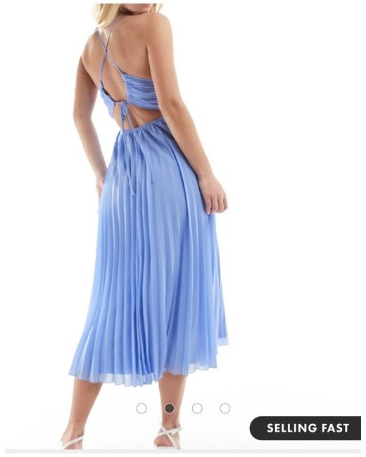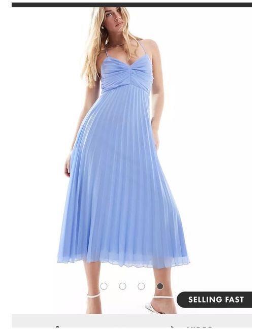 This stunning ASOS dress is perfect for any special occasion. With a flattering fit and flare style, sleeveless design and midi length, it is both comfortable and chic. The dress features a beautiful blue colour that is perfect for the summer season. Made for women in size 6, this dress is ideal for weddings or parties. The dress is made from high-quality materials and comes with tags attached. Don't miss out on this amazing opportunity to add a stylish and timeless piece to your wardrobe.