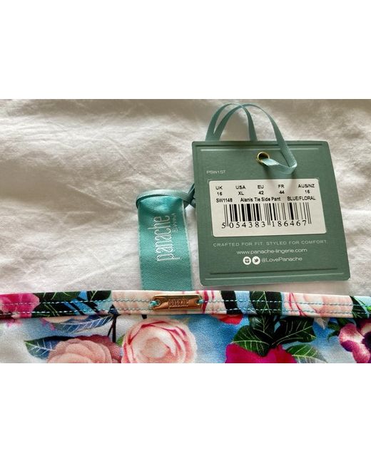 The Panache Alanis tie side bikini bottoms in size 16 are a stylish addition to any beach or pool outfit. Featuring a floral pattern, these bottoms are perfect, BNWT.The Polyamide material allows for comfort and durability, while the tie sides provide an adjustable fit. These bikini bottoms are part of the Panache brand, which is known for its quality and style. They are designed for women and are perfect for those who want a fashionable and comfortable swimwear option. Whether you're lounging by the pool or catching some waves, these bikini bottoms are sure to make you feel confident and ready for anything.