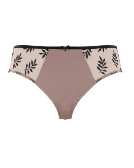 The classic Tango by Panache design in a new and exciting style. These briefs are the perfect everyday choice if you don't want to compromise trendy looks for a comfortable fit. The cheeky rear coverage and sheer side panels add a bit of an edge to this design. The side panels are decorated with contrasting embroidery with an eye-catching leafy pattern. The smooth material prevents any bothersome VPL. Sheer panels on the front sides with contrasting embroidery Smooth fabric Mid-rise waist Cheeky rear coverage Matching coordinated available Country of origin: China Composition: 79% Polyamide | 9% Elastane | 7% Cotton | 5% Polyester Listed in UK sizes