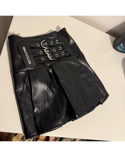 Pretty Little Thing Faux Leather Ruched Micro Mini Skirt UK 10