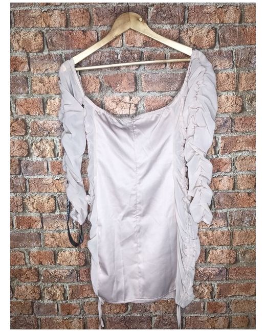PrettyLittleThing Nude Bardot Mesh Insert Ruched Bodycon Dress Size 10 BNWT. Condition is "New with tags". Dispatched with Royal Mail 2nd Class.
