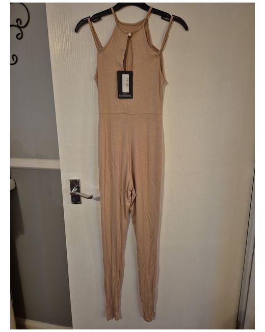 Embrace effortless style with the PRETTYLITTLETHING beige jumpsuit, tailored to flatter with its slim fit design. Ideal for casual outings or a relaxed holiday vibe, this one-piece wonder is crafted from 100% viscose, ensuring both comfort and a smooth silhouette. The sleeveless strappy jumpsuit is a versatile addition to your summer wardrobe, offering a straight leg style that complements the lightweight fabric and airy feel. Carefully constructed for the modern woman, this jumpsuit features a single piece of premium material, making it a fuss-free garment that is easily cared for with machine washing. The neutral tone and understated accents provide a canvas for personal style expression, whether paired with sandals for a day at the beach or dressed up with heels for an evening affair.