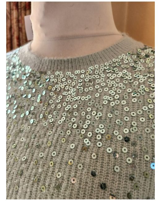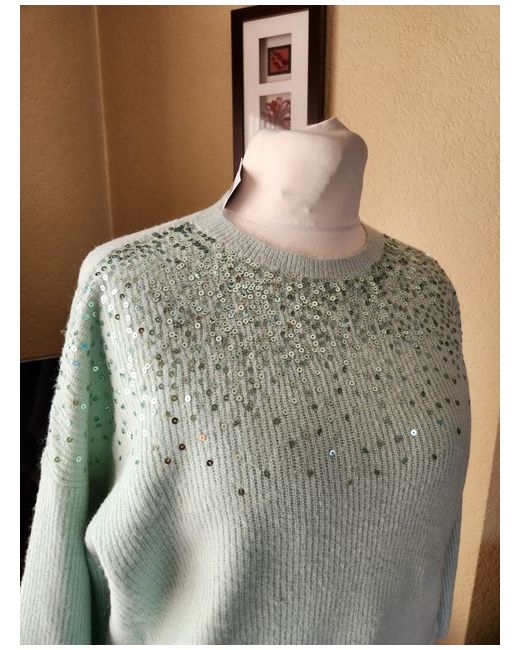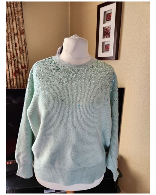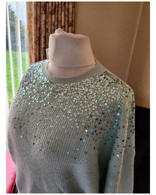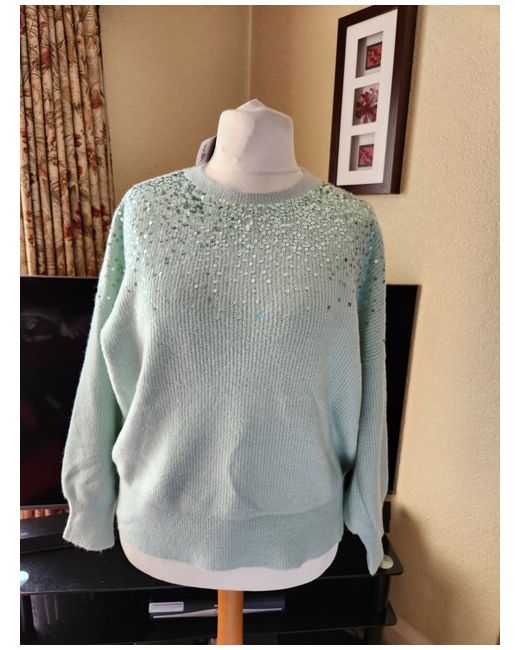 Add a touch of sparkle to your Christmas jumper collection with this stunning pale green sequin jumper from Wallis. The knit fabric type and crew neckline provide a comfortable fit, while the pullover style adds a touch of convenience. The jumper is available in size L, making it an ideal comfortable jumper from Wallis. Chest 52in Length 26in New with tag