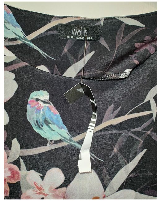 Size 12 and cut in a regular fit, this black blouse features a vibrant multicoloured floral pattern that adds a splash of colour to any ensemble. Black with Multicoloured Pattern Front & Back. New Wallis Smart Top Size 12 Regular.