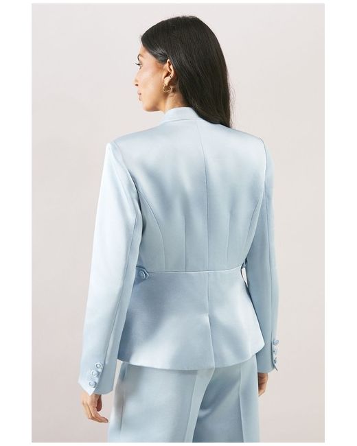 Sophisticated collarless design for a modern twist Double-breasted front with elegant button closure Tailored fit with a nipped-in waist for a flattering silhouette Functional flap pockets add practicality and style Long sleeves with button cuffs for a polished finish Embrace effortless sophistication with this collarless double-breasted blazer from Wallis.