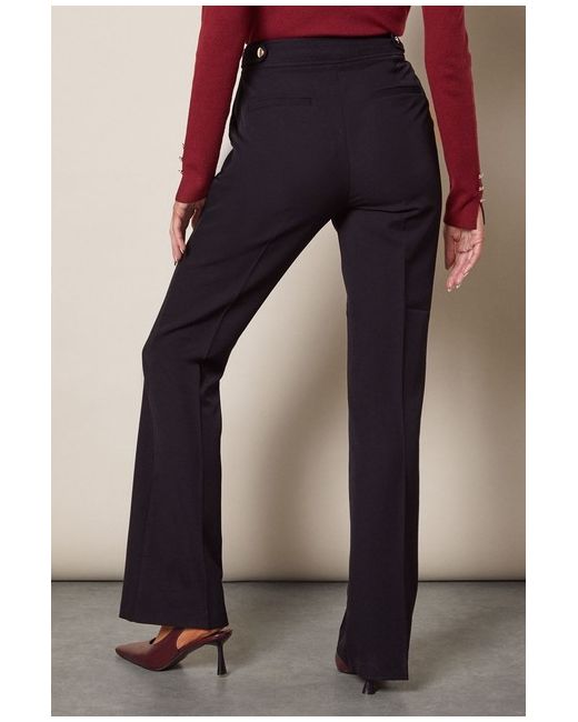 Elegant bootcut design for a flattering silhouette High-rise waist with decorative button detail Sleek front crease for a polished look Practical side pockets for convenience Versatile length suitable for various heel heights These smart bootcut trousers from Wallis are a wardrobe essential for the sophisticated woman.