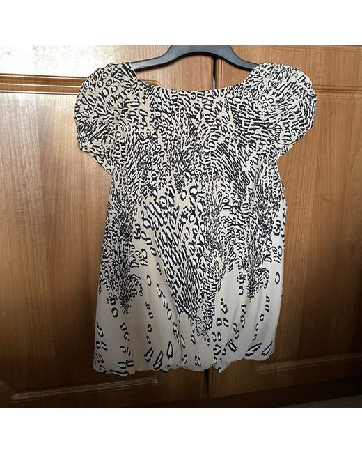 Cream Grey Multi Colours Patterned Shoulder Slit Top M