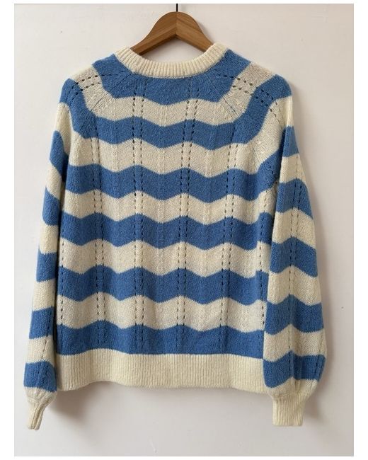Jemma Chunky Cotton Jumper Warm Ivory Navy Medium BNWT