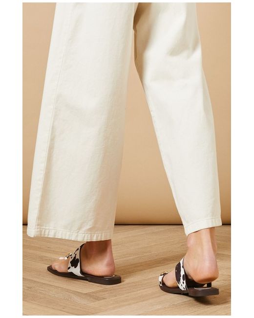 OASIS Fizz Faux Cow Print Suede Embellished Toe Loop Sliders.