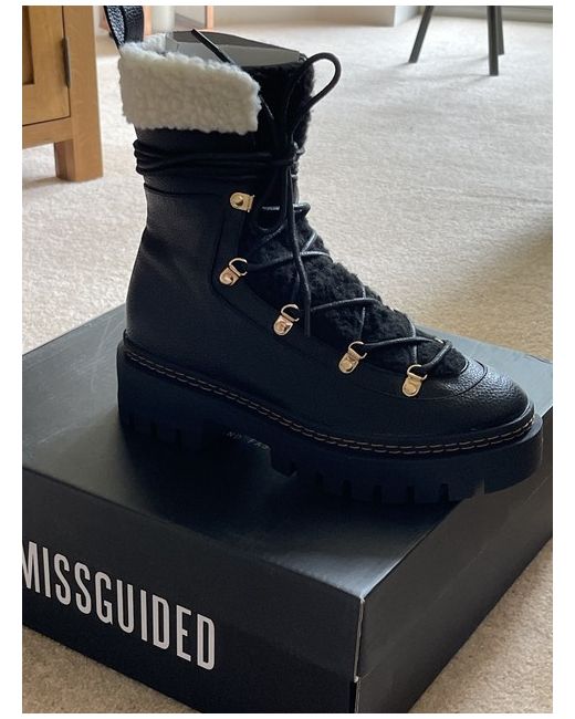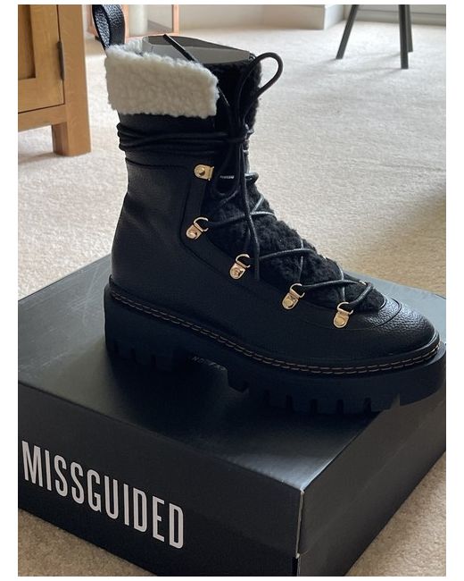Elevate your shoe game with these black Borg hiker boots from Missguided. Featuring a combat-style design, these boots are perfect for any fashion-conscious individual. Made from high-quality faux leather, they are durable and long-lasting. The boots are available in size 4, making them suitable for women who enjoy a comfortable and snug fit. These boots are perfect for any occasion and can be paired with a range of outfits. They are versatile and can be dressed up or down depending on your mood. The black colour adds a touch of elegance and sophistication to any look. With these boots, you can step out in style and make a statement wherever you go.