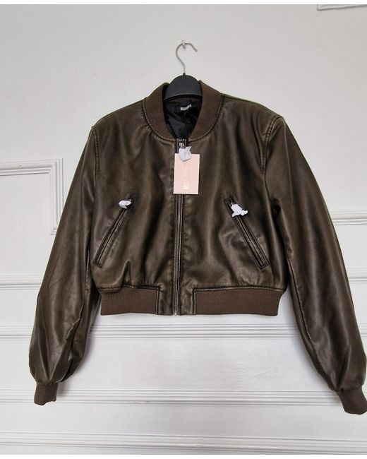 Elevate your style with this stunning Missguided Khaki Washed Bomber Jacket. This bomber jacket is a must-have for women who love to stay on-trend. The jacket comes in a beautiful green colour and is made with faux leather outer shell material. It features a regular size type and is available in size S. The jacket is perfect for any occasion and is a great addition to any wardrobe. Don't miss out on the opportunity to have this stylish and versatile piece in your collection.