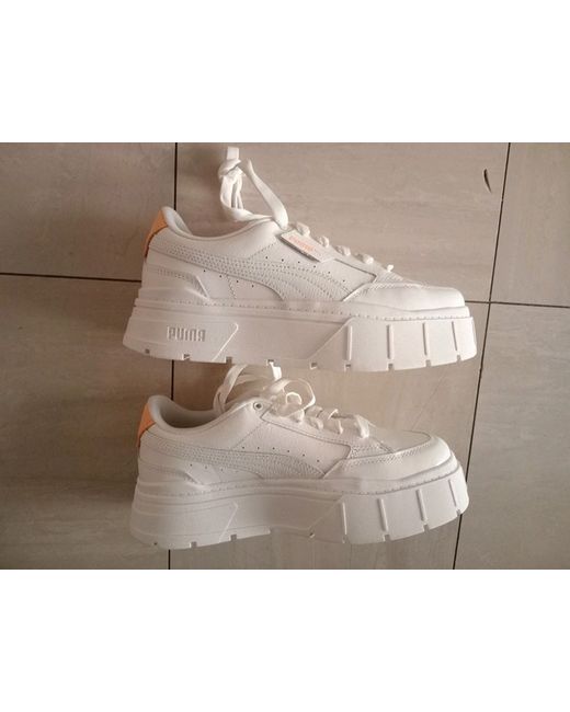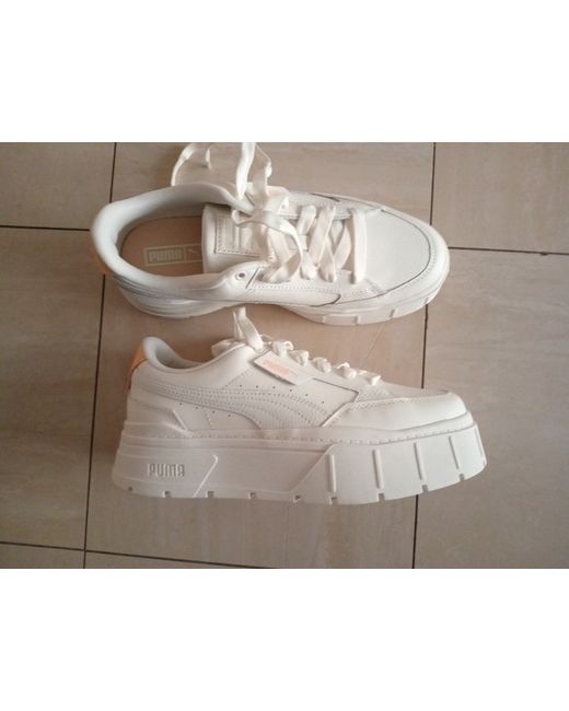 The Puma Mayze Stack Soft Women Trainers in size 7 are a stylish and comfortable choice for women looking for activewear footwear. With a lace-up closure and cushioned insole, these sneakers offer a secure and comfortable fit. The cream colour and low-top style make them versatile for various occasions, while the rubber outsole provides durability and support for walking activities. Manufactured in Vietnam in 2021, these trainers are designed for overpronation and are part of the Puma Mayze product line, known for their outdoor and classic themes.