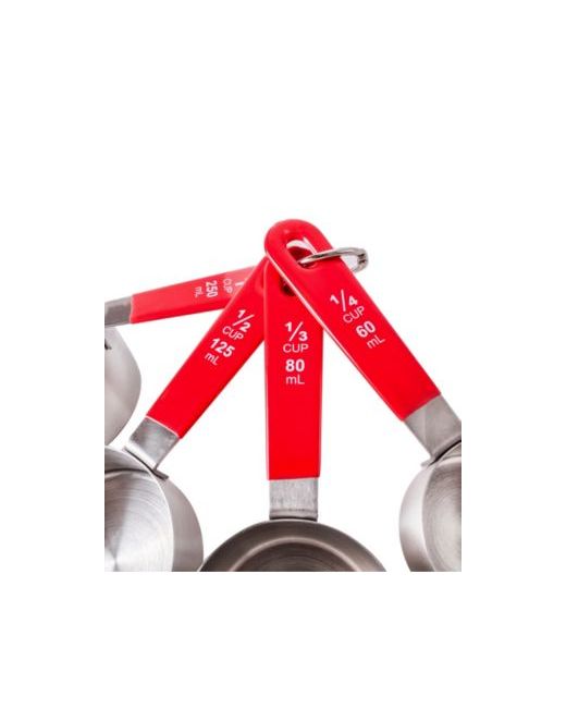 BergHOFF 8-Pc. Measuring cups and spoons is a must-have for any kitchen. These cups are durable, and easy to clean, making them perfect for everyday use. The plastic spoons are lightweight yet sturdy, making them ideal for measuring both wet and dry. One of the standout features of this set is the convenient hanging loop that allows you to easily store the measuring cups and spoons together. This not only helps to keep your kitchen organized but also ensures that you always have the right measuring tools on hand when you need them.