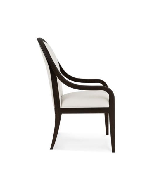 The Mazen Arm Chair embodies classic luxury and timeless sophistication. Its exquisite white plush upholstery with a rounded top provides exceptional comfort, while both the tapered legs and arms feature a contrasting rich dark cabernet finish, creating a striking balance. This arm chair effortlessly enhances any dining space, combining elegance with simplicity.