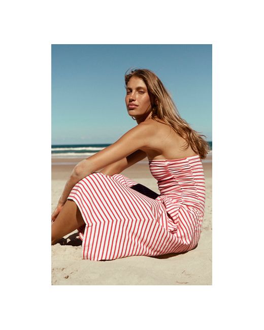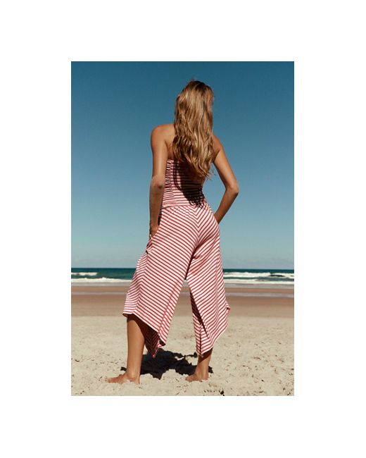 Effortlessly essential, this one-and-done jumpsuit from free-est is featured in striped, strapless style with wide cropped legs and a dropped waistline. * Comfy cotton fabrication * Smocked backing * Side pockets * Diagonal hems Sailor One-Piece by free-est at Free People in Fiery Red Combo, Size: XS