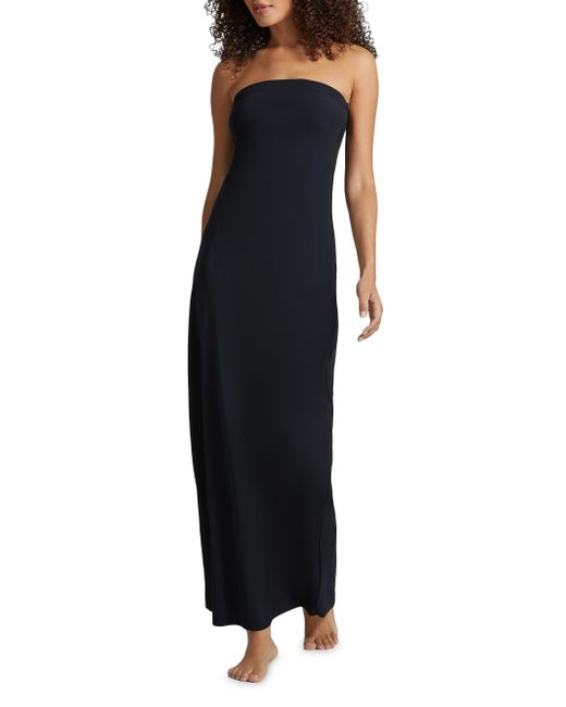 Crafted of smooth microfiber, Commando's Classic strapless maxi slipdress is thoughtfully designed with raw edging for a flattering silhouette. Strapless Back slit Pulls over 78% nylon/22% spandex Machine wash Imported of Japanese fabric SIZE & FIT About 55" from bust to hem Model measurements: 5'10" tall Model is wearing a US size Small. Lingerie - Contemporary Collections > Commando > Saks Fifth Avenue > Barneys. Commando. Color: Black. Size: Small.