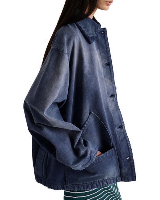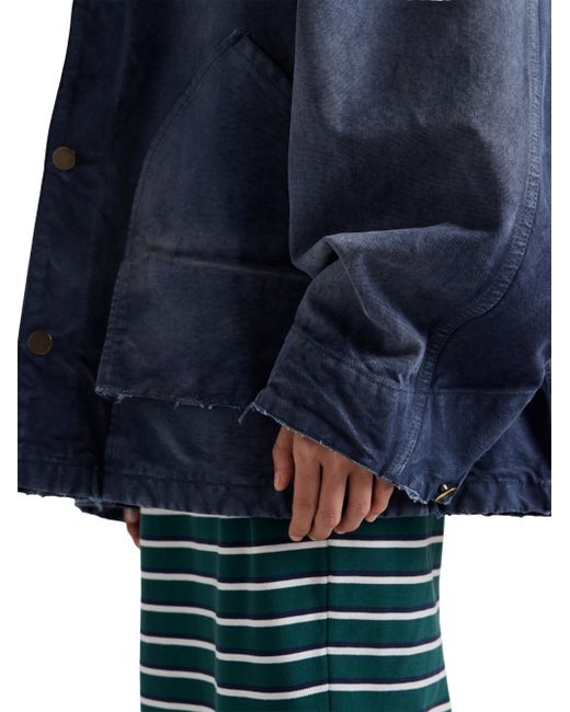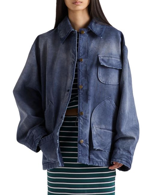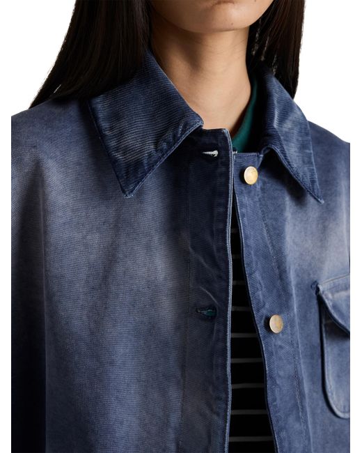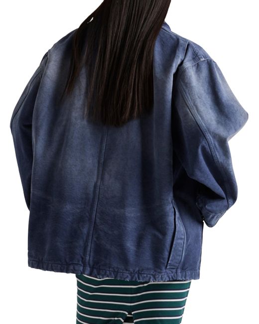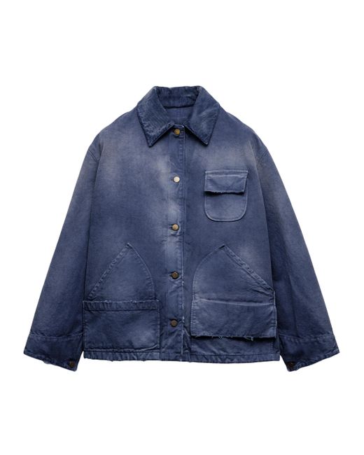 Unlined Shirt-style collar Long sleeves Cuff with buttons Snap closure Flapped patch pocket on the chest Low patch pockets on the front Matching stitching Length: 74 cm, Size: 40 Triangle logo Garment-dyed and hand-treated for a vintage effect Imported 100% Cotton - 100% Capra Hircus Leather. Lsd Rtw - Prada Rtw > Prada > Saks Fifth Avenue > Barneys. Prada. Color: Blue. Size: 4.