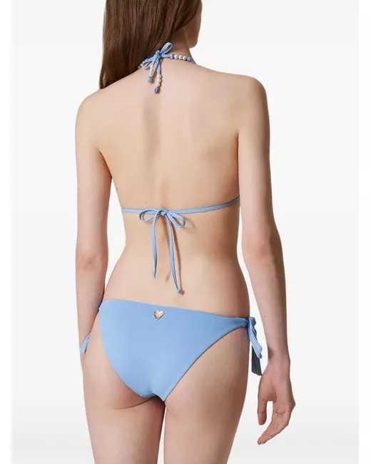 light blue adjustable tie closure bead detail halter neck gathered centre padded cups Be mindful to try on swimwear over your own garments.