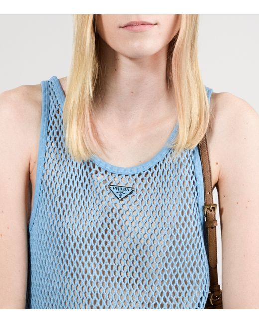Prada presents a modern interpretation of light, airy summertime dressing with this mini dress. The cotton overlay is made from mesh and offers a silhouette inspired by sporty tank tops, while a slip beneath maintains a weightless feel with its lightweight handle and semi-sheer material.