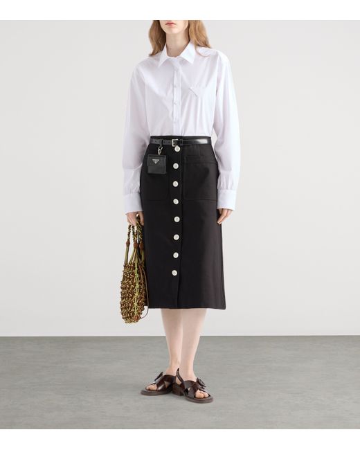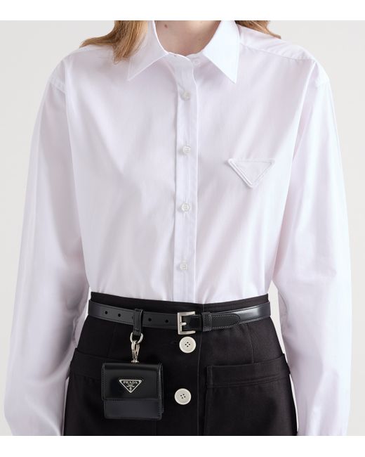There are distinct similarities between Prada's womenswear and menswear - particularly within the House's non-seasonal collections. This shirt is a refined example, cut to a boxy, men's silhouette and finished with a rounded hem that can be tucked in or left loose, creating a curvaceous contrast to the iconic Triangle motif at the chest.