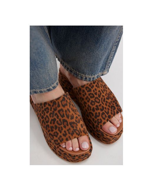 Slip into these so cool retro style sandals featured in a mule design with a textured flatform sole. * Cushioned insole * Wide leather strap * Lightweight **Fit Note:** This style runs true to size. If between sizes, we suggest sizing down. Harbor Flatform Sandals by FP Collection at Free People in Leopard Suede, Size: EU 37