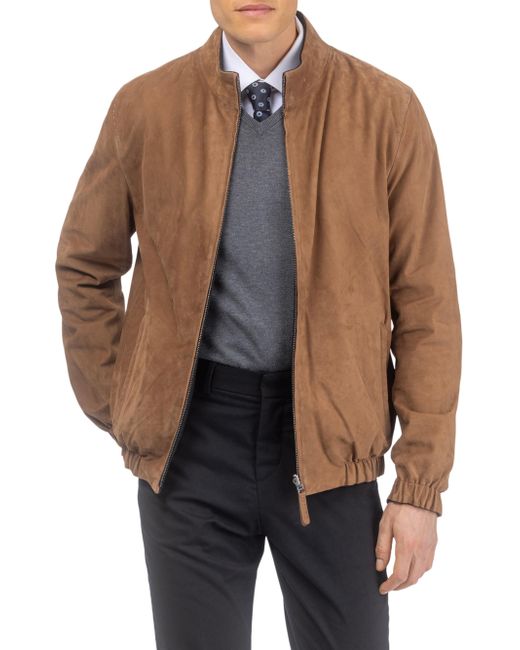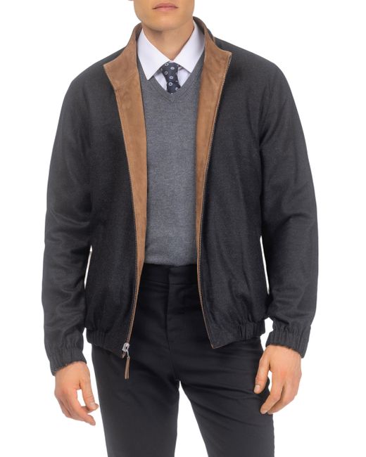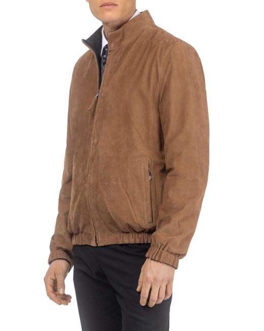 Men's nubuck jacket reversible to Loro Piana cashmere & wool. Stand Collar Straight sleeves Zipper closure Side pockets Reversible to Loro Piana Cashmere & Wool Fabric Real Calf Nubuck from Turkey, dyed Professional cleaning only Imported Model is 6'1'' wearing size Large Garment is approximately 27'' from shoulder to hem. Lsd Mens - Mens Rtw Lsd Mp > Gorski > Saks Fifth Avenue > Barneys. Gorski. Color: Cognac. Size: Small.
