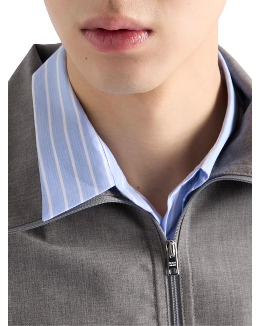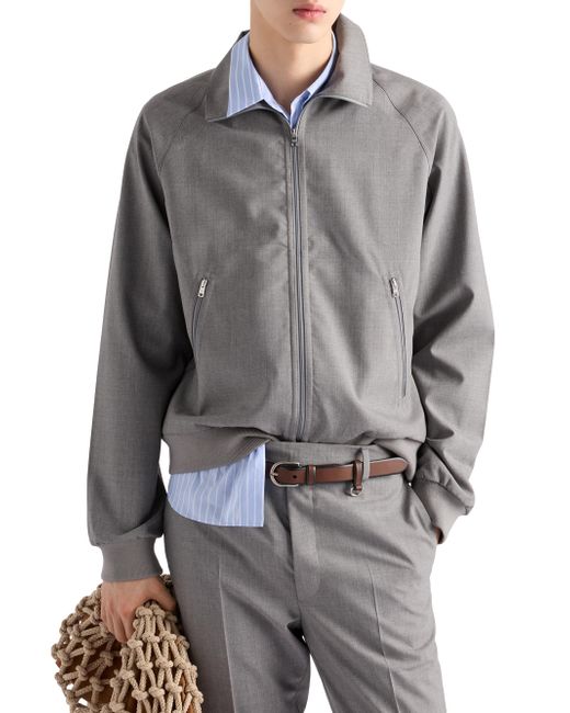 Regular fit Stand-up collar Raglan sleeves Zipper closure Visible zipper pockets Ribbed knit cuffs Regular shoulder Straight ribbed knit hem Unlined Fabric triangle logo and sartorial logo label Imported 100% Fleece Wool. Lsd Rtw - Prada Rtw > Prada > Saks Fifth Avenue > Barneys. Prada. Color: Grey. Size: 38.