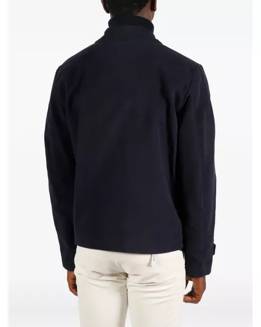 midnight blue front button fastening two side welt pockets classic collar long sleeves