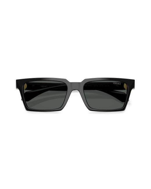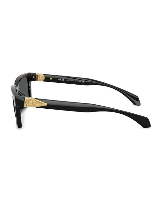 These Versace rectangular sunglasses provide UV protection with solid lenses and a sleek plastic frame. 100% UV protection Solid lenses Includes case and cleaning cloth Plastic Made in Italy SIZE 55mm lens width 18mm bridge width 140mm temple length Please note: Lens replacement is optional. ABOUT THE BRAND Founded in 1978, Versace is instantly recognizable by the signature Medusa head logo, chosen by founder Gianni Versace for its Greek symbolism. The Italian label is known for its luxe, bold clothing and accessories-think gilding, oversized logos and punchy prints. Since taking over artistic direction, Gianni's sister Donatella Versace has maintained the brand's strong identity, with a renewed vision to give customers the ultimate freedom to express themselves. Soft Accessories - Men Sunglasses > Versace > Saks Fifth Avenue > Barneys. Versace. Color: Black.