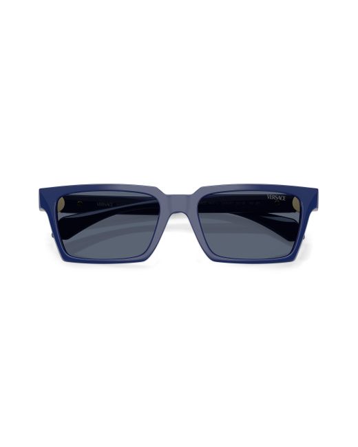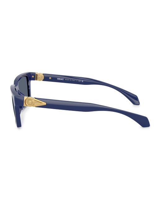 These Versace rectangular sunglasses provide UV protection with solid lenses and a sleek plastic frame. 100% UV protection Solid lenses Includes case and cleaning cloth Plastic Made in Italy SIZE 55mm lens width 18mm bridge width 140mm temple length Please note: Lens replacement is optional. ABOUT THE BRAND Founded in 1978, Versace is instantly recognizable by the signature Medusa head logo, chosen by founder Gianni Versace for its Greek symbolism. The Italian label is known for its luxe, bold clothing and accessories-think gilding, oversized logos and punchy prints. Since taking over artistic direction, Gianni's sister Donatella Versace has maintained the brand's strong identity, with a renewed vision to give customers the ultimate freedom to express themselves. Soft Accessories - Men Sunglasses > Versace > Saks Fifth Avenue > Barneys. Versace. Color: Solid Blue.
