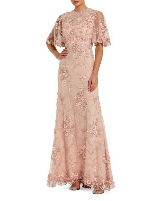 This Mac Duggal floor-length gown is crafted of lace and adorned with floral appliqué. Round neck Short flutter sleeves Back zip closure 100% polyester Lining: 100% polyester Spot clean Imported SIZE & FIT About 60" from shoulder to hem Model measurements: 5'10" tall Model is wearing a US size 4. Dress Collections - Mac Duggal > Mac Duggal > Saks Fifth Avenue > Barneys. Mac Duggal. Color: Rose. Size: 6.