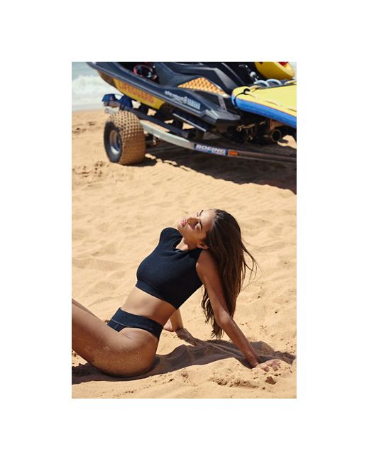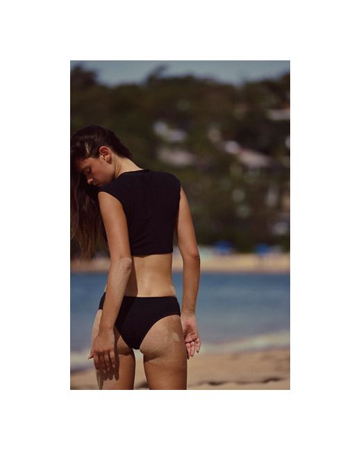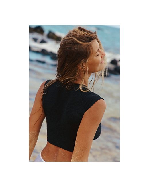 So cool and cropped, this textured swim top from our free-est Swimcollection is featured in a soft fabrication and t-shirt inspired silhouette with a crew neckline. **Fit:** Formfitting, cropped, pull-on style **Features:** Recycled fibers, stretchy feel, hardware-free, t-shirt inspired silhouette, crew neckline, cap-style sleeves, full-coverage front and back, contrast trim **Why We free-est The Sonny Tee Top at Free People in Black, Size: XS