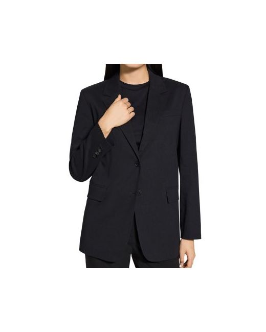 About The Brand American luxury sportswear brand Theory follows the simple philosophy that clothes should be well-tailored and supremely comfortable. What began twenty years ago with a state-of-the-art material designed to stretch and perform without compromising an elevated hand-feel has become a sophisticated luxury brand that continues to innovate. In addition to crafting modern staples designed to last for years, Theory is dedicated to conscious production, as well as leadership initiatives and industry partnerships. Using ethically sourced materials and sustainable manufacturing, Theory remains in pursuit of tomorrow. FeaturesAn oversized, straight fit, single breasted blazer with lower flap pockets, welt chest pocket, and vented button closure at sleeves.