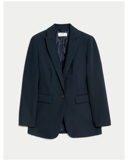 Marks & Spencer. Embrace effortless sophistication in this single-breasted blazer, made with added stretch for longer-lasting comfort. It's cut to a sleek tailored fit with smart notched lapels and a single button fastening.