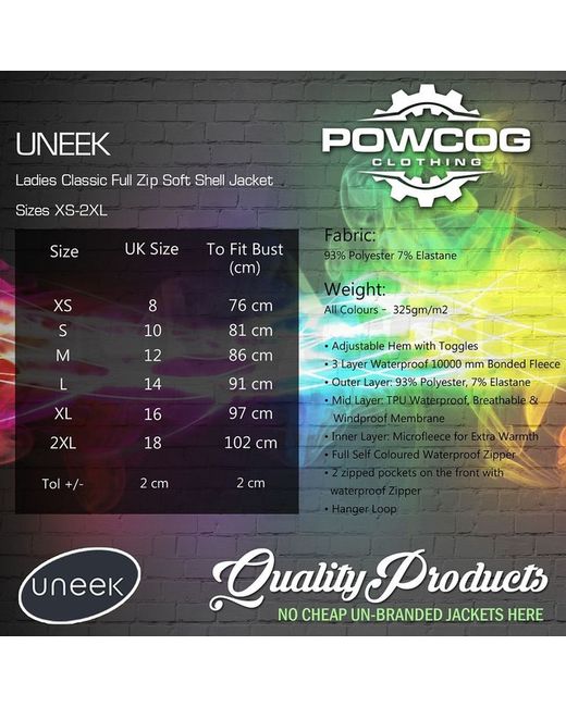 UNEEK Ladies Classic Full Zip Soft Shell Jacket in a range of 3 colours. Ideal for all Clubs, Schools and Workwear.