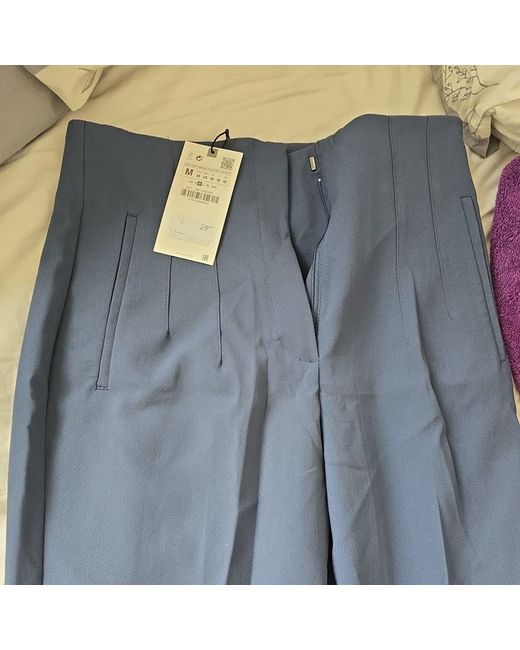 This product is a pair of women's trousers by Zara in a stylish blue colour. The trousers are a regular fit, ankle length, and come in size M. Perfect for adding a smart and stylish touch to any outfit, these trousers are a versatile addition to any woman's wardrobe. Made from high-quality material, these trousers offer both comfort and style, making them a practical and fashionable choice for any occasion.