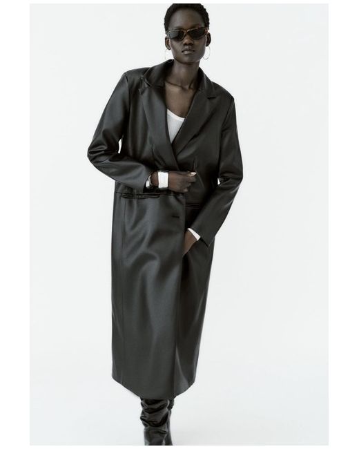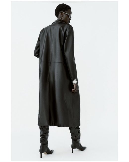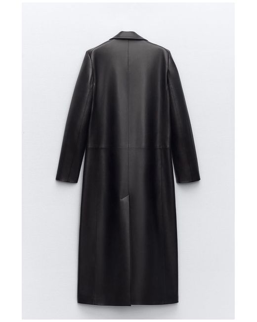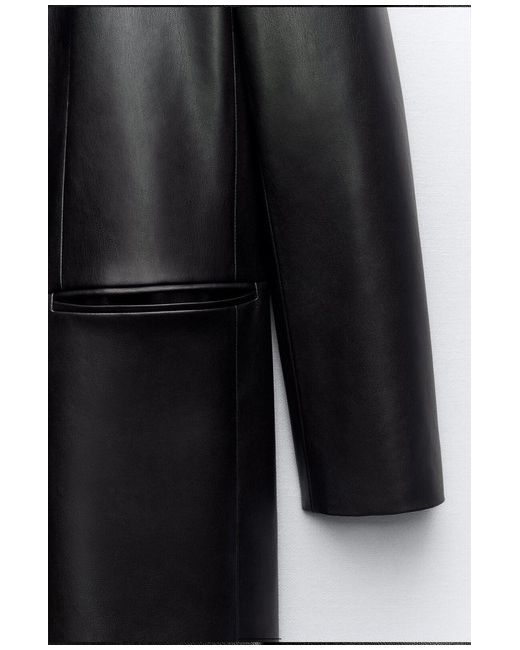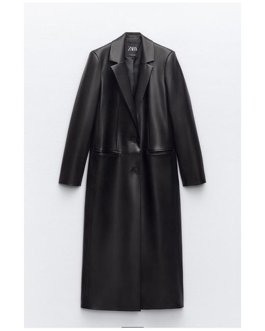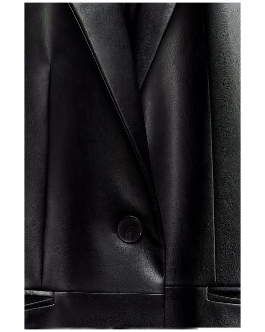 Leather effect coat with a lapel collar. Featuring long sleeves with shoulder pads, front welt pockets and button fastening at the front. BLACK COLOUR. 100% polyester. 100% polyurethane.