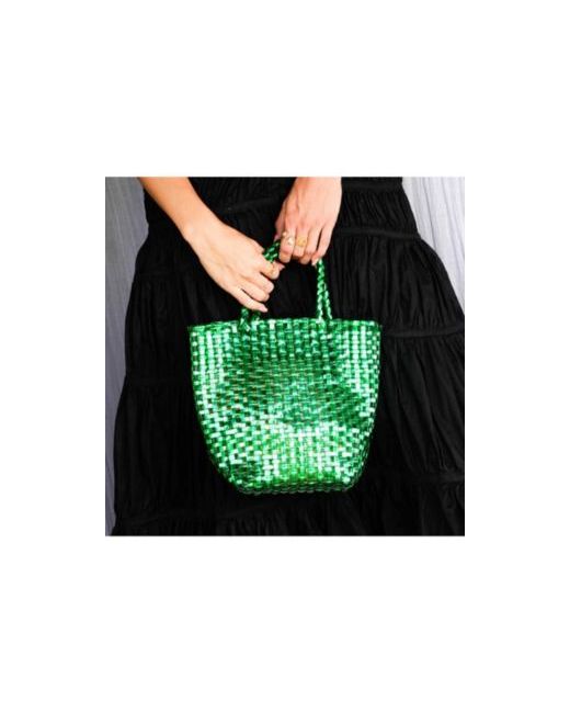 La Tote - A Story of Renewal. Life finds its full circle in La Tote, meticulously revived from discarded ocean plastic and thoughtfully brought back to life to serve a new purpose in the world - offering beauty with intention, just for you.Handwoven with a sturdy yet elegant structure, La Tote's mini form makes it the perfect companion for your next Mediterranean escape. Delicate in appearance, yet built to endure - this tote will carry your essentials from the farmer's market to a sunlit brunch by the sea.Crafted to fit your daily and travel essentials - from a compact camera and mobile phone to a handful of fresh lemons and a bottle of milk from the farmer s market - La Tote effortlessly blends functionality with timeless charm.Dimensions: 10" (L) x 9" (H) x 5" (D)Composition: 100% Repurposed post-consumer plasticHandwoven in Bali, with a touch of Californian flair.Captured beautifully in Bali, featuring our muse, Inka Williams.
