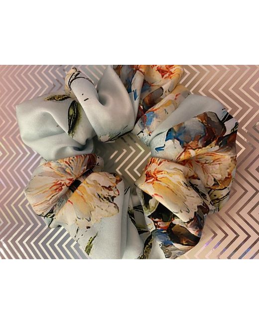 Handmade silk scrunchie,Floral baby blue