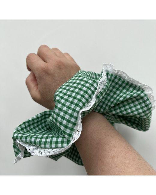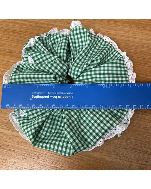 8” jumbo scrunchie in green gingham and lace.