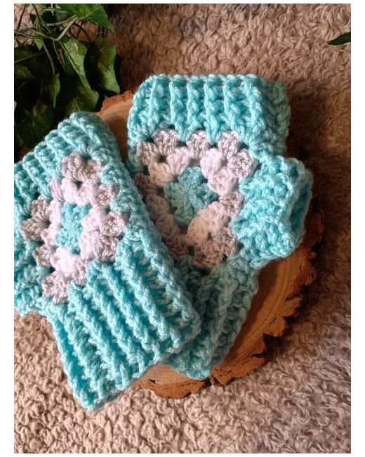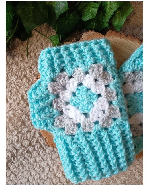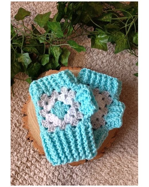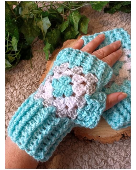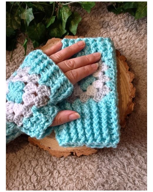 Beautifully handmade crochet fingerless gloves, which have been handmade by myself using 100 % acrylic double knitting yarn. Each glove is made up of two granny squares which are joined together and then ribbing added to the wrist, thumb and the top part of the hand.