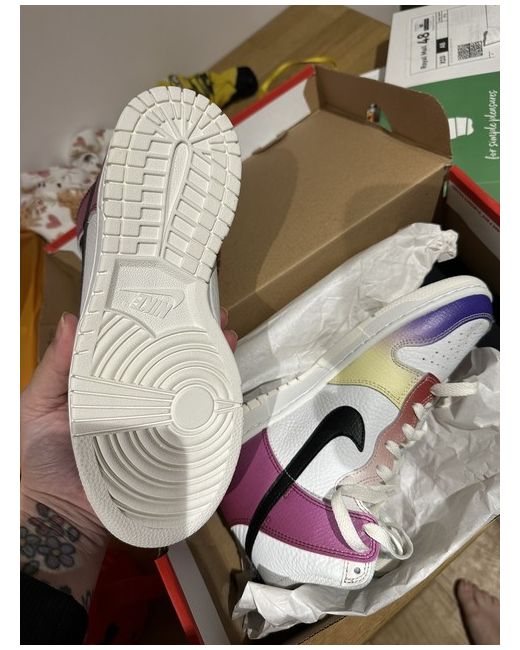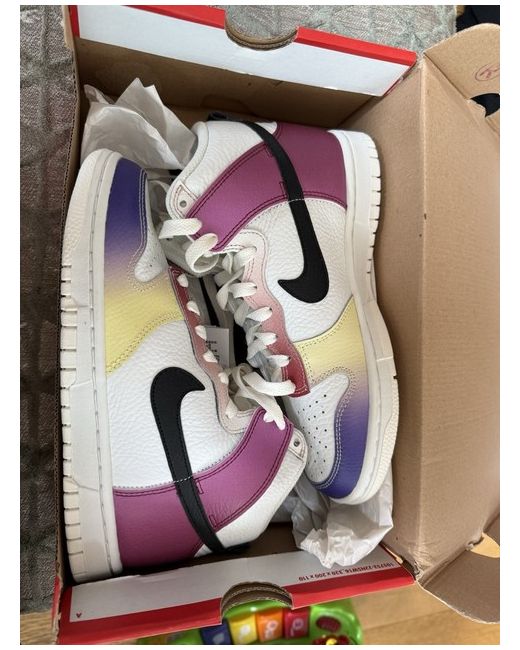 The multi-color gradient design adds a unique twist to the classic Dunk High, creating a visually striking sneaker that's sure to turn heads.