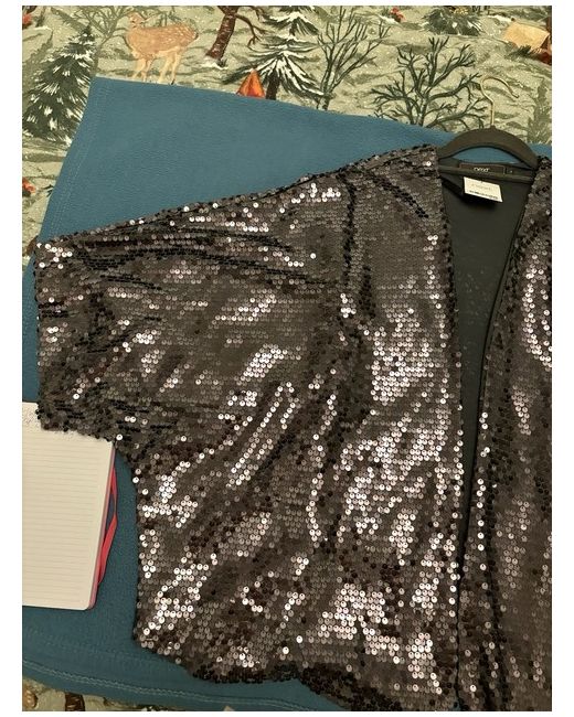 Pretty sequin jacket by next size large BNWT. Edge to edge with a relaxed bar wind style sleeve, no separate sleeve. It measures approx 56 inches across the bust and approx 26 inches in length. Postage is second class tracked.