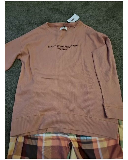 Women's Pink Orange Check Pyjamas S Tall