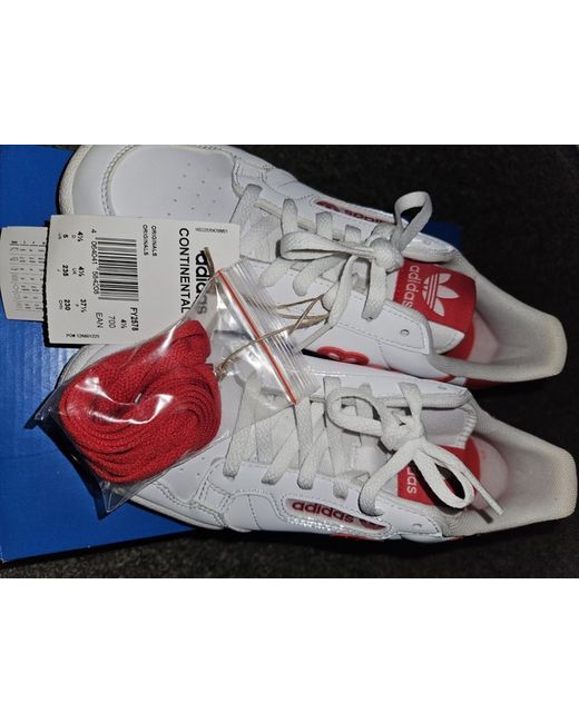Brand new in box Adidas continental 80 J White and Red UK size 4.5 Comes with white laces inserted and extra red laces