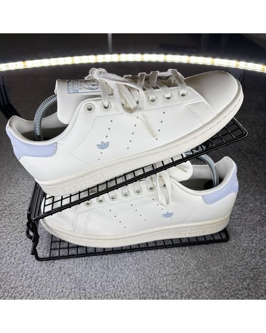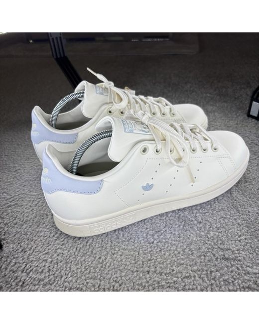 Step into comfort and style with the adidas Stan Smith trainers in a light blue and white colourway.