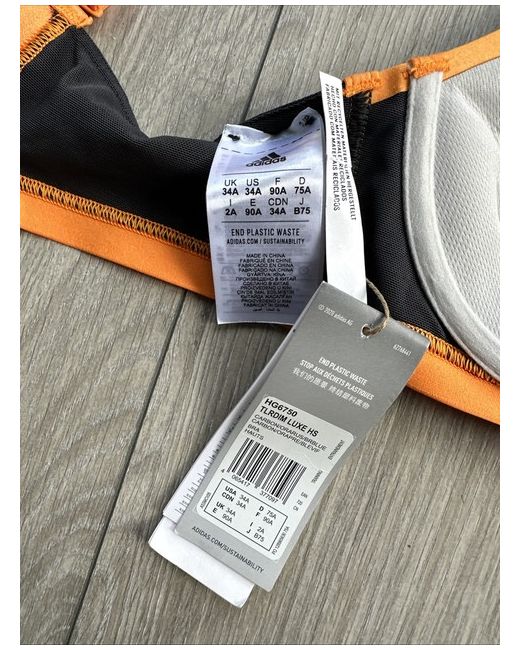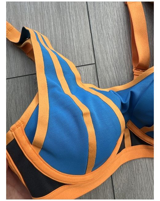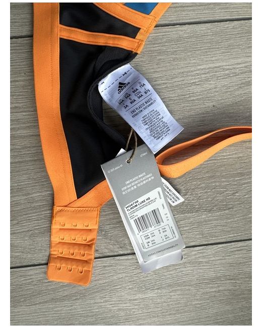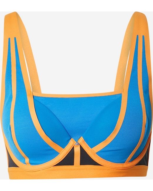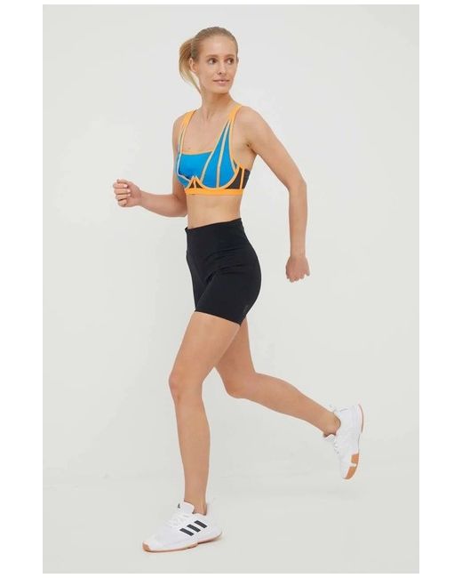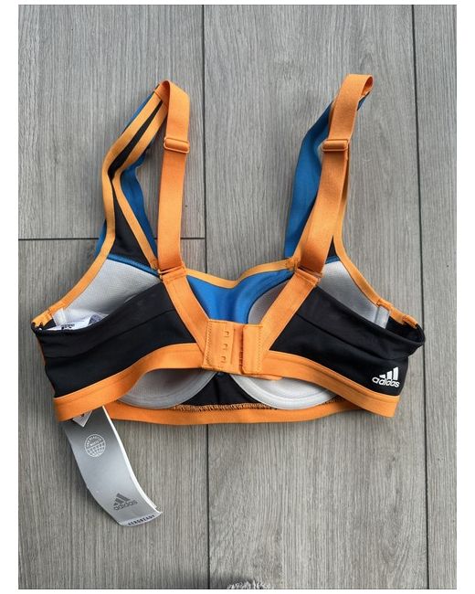 ADIDAS PERFORMANCE impact Luxe High Support Sports Bra in color block of blue and orange. Sports bra from the adidas Performance collection. - This product is part of the Adidas End Plastic Waste product line, made from recycled materials.