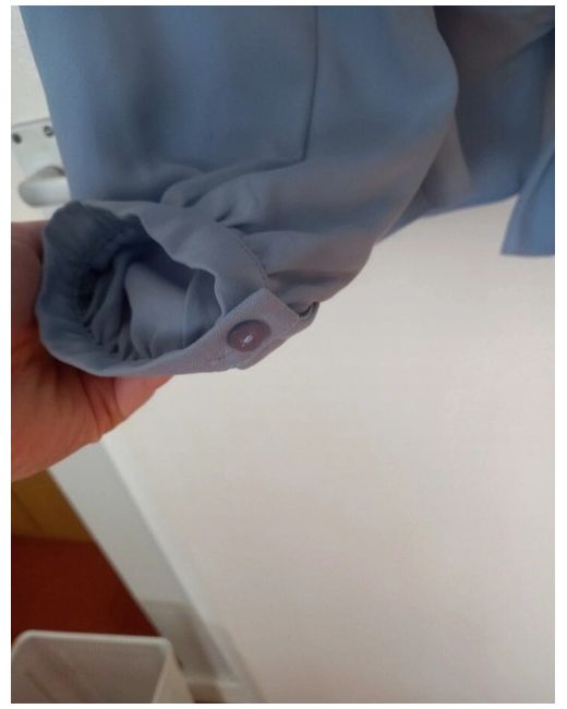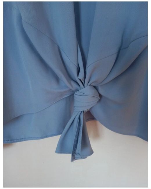 Light blue long sleeve blouse with a tie at the front and cuffed wrists. It is brand new and is in excellent condition.